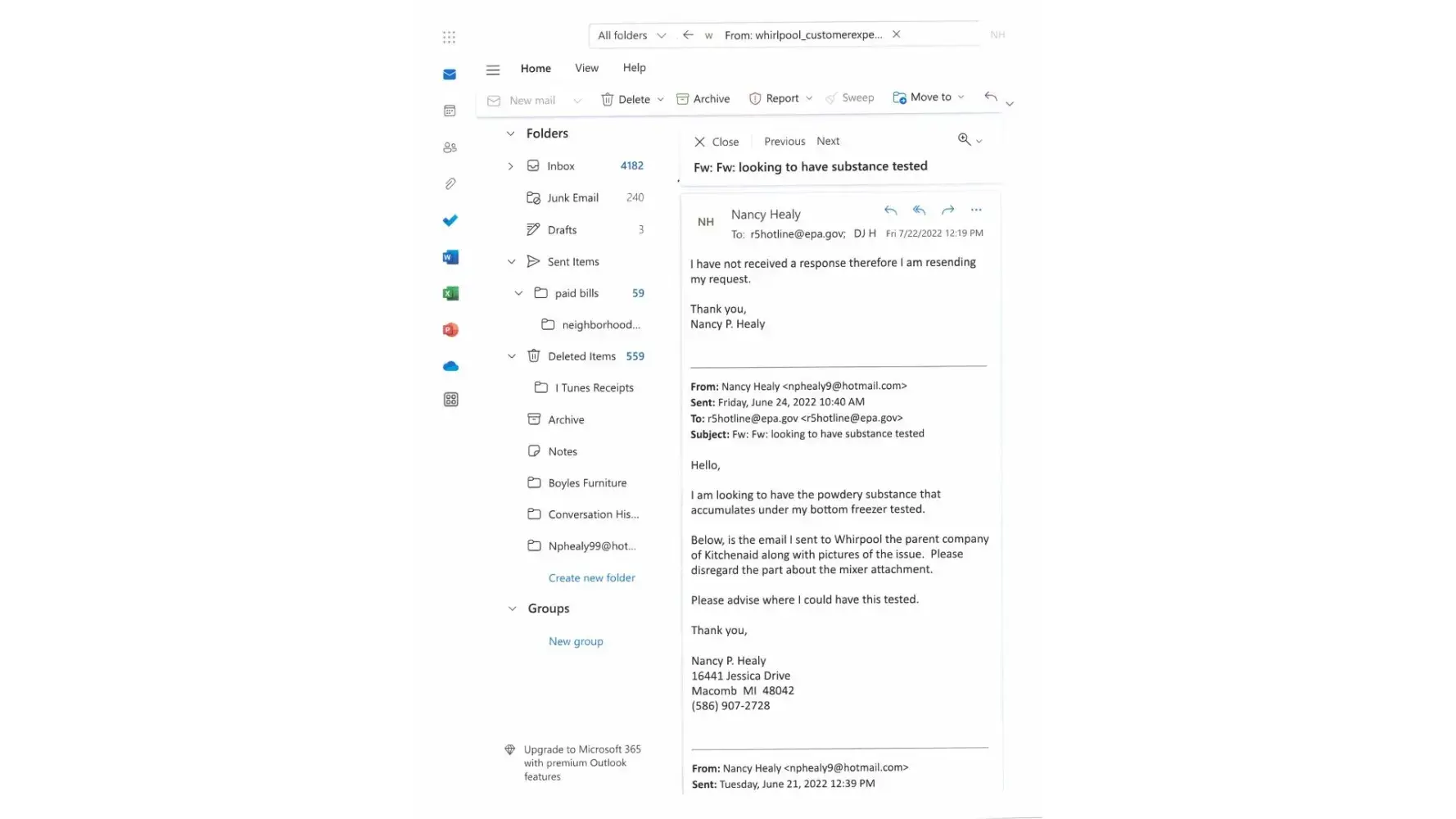 Whirlpools response to me and the BBB: we have escalated his concerns and will hear from someone within 3 days. It's been about 8 months and still waiting for either call.