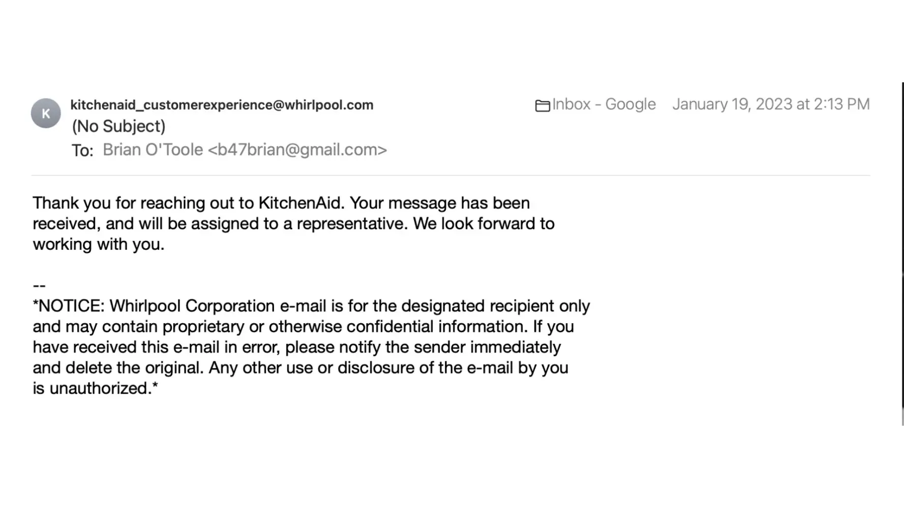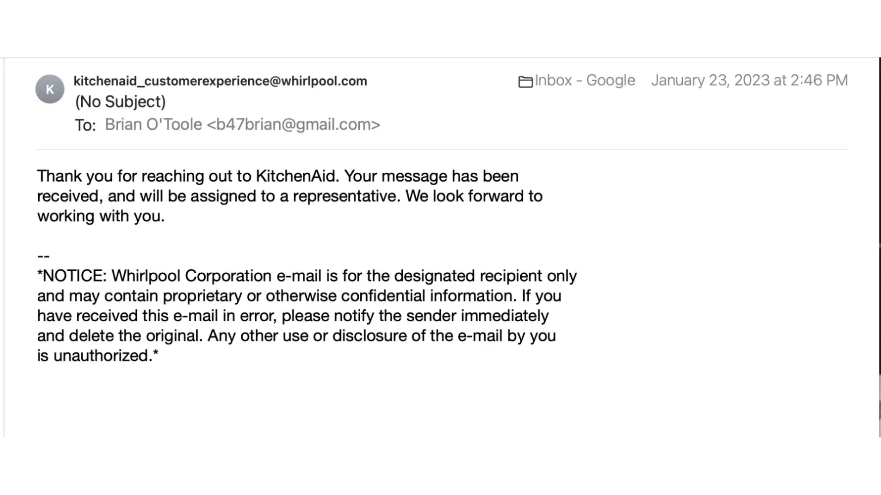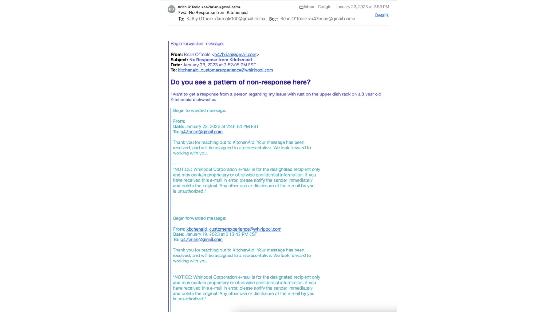 Whirlpool/KitchenAid just lost a lifelong customer over $100. Btw, every other appliance in our home is Whirlpool.