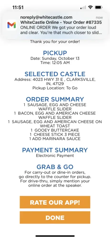 Read full complaint5 White Castle Reviews