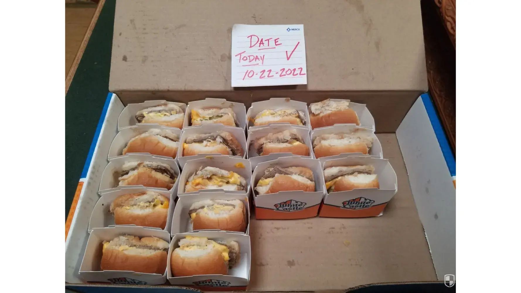 My daughter missed school on 10/20/2022 and 10/21/2022 from this and missed 2 tests. Not sure what was wrong with the food all I know is that we both ate the same meals everyday and felt fine until this was in our system. More than half of the burgers (16 Left) are still in the fridge in the case they came in. Horrible, horrible experience and on top of it all we paid $48.45 to get sick as a dog.