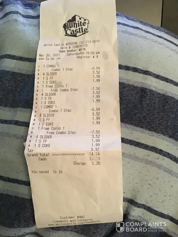 On Saturday, March 21, 2021, at 4:19pm I came to order Buy One Get One Free Castle Combos with the coupon sent to my email [protected]@yahoo.com for the St. Patrick's Holiday. I went there to pick up Sliders for my parents who are both in their 70s and cannot take a chance to catch Covid-19 when they have not been vaccinated just to use a coupon for BOGO. I printed out these coupons in black & white another in color where most of the coupon would have been Green for St. Patrick's Day. I know the coupon says for use by one customer per visit but in these pandemic times you need to tell your White Castle Managers to make exceptions. This Manager that afternoon argued with me that she was only going to let me use 2 of the 3 coupons for BOGO. She was belligerent and said from now on any BOGO coupon would be one time per customer per visit. If I'm taking advantage of a coupon that you send me and I am purchasing for Senior Citizens who are at risk for Covid-19 you guys at White Castle have to understand that all your clientele can't go out to buy your products. I hope you contact me at [protected]@yahoo.com or [protected]@yahoo.com. Thank you very much.