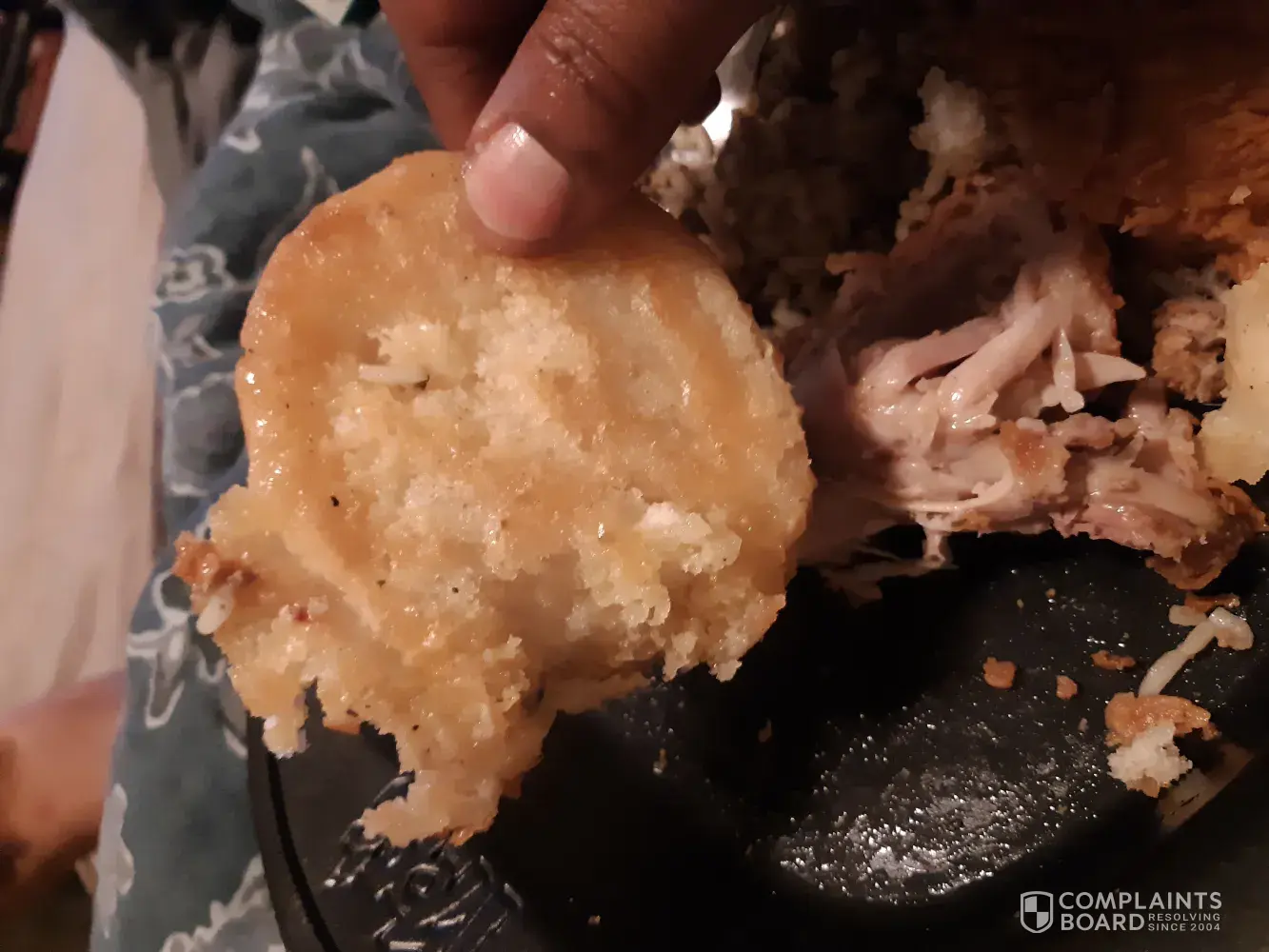 I ordered shrimp and tender platter, the shrimp, tenders and biscuit were hard as rocks. Like they were under a heat lamp for hours. Very disappointed couldn't even finish the biscuit., I usually order two. Below is a pic of the biscuit,