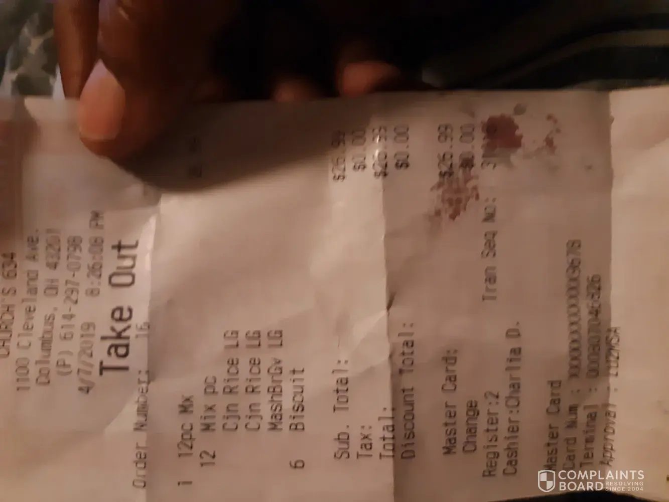 My son came to churches chirches chicken midfield alabama. We ordered at 15pc mixed and they gave me 15 pc dark they left off the biscuits left off the peppers and charged me for a large extra mashed potatoes and gravy I asked for a small I froze everything I want my full refind of $38.00 I have the receipt.