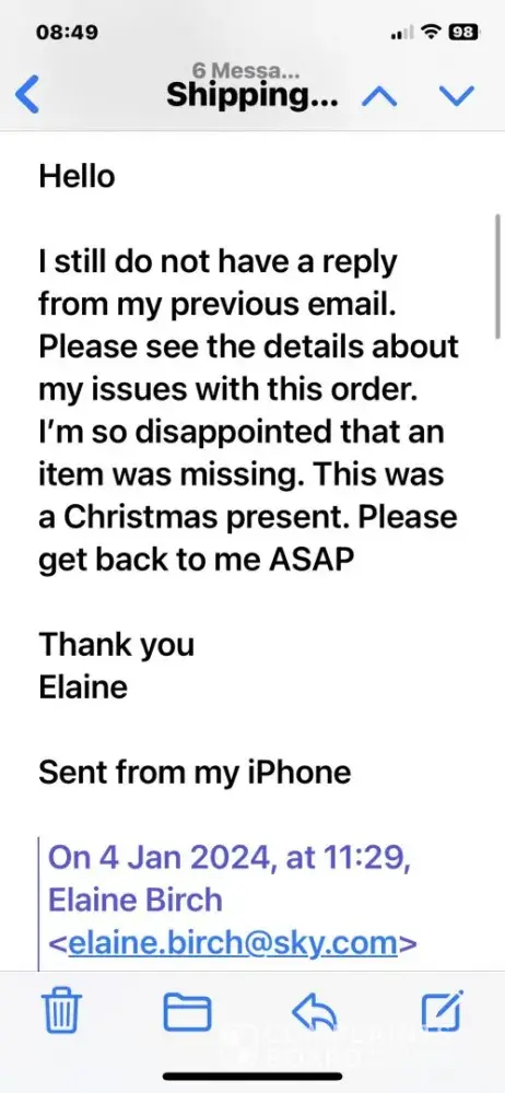 I have emailed many times and still no refund and its now 17th December 24 , I have had to order and pay for another one as Christmas is getting nearer and I did not want not let my daughter down.