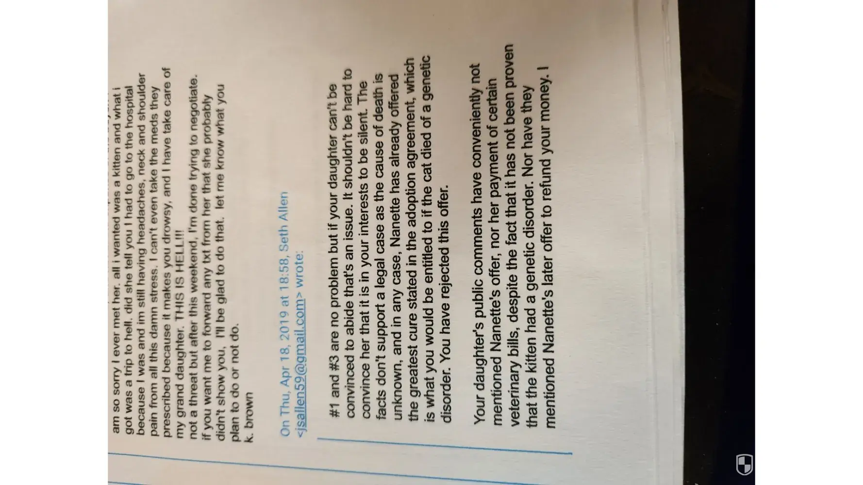I offered to replace the kitten or refund the clients investment . Ms. brown refused my offers and I tried to resolve the sad situation if she was signed NDA. Ms. Brown rejected my offers, those were my terms, she refused... Ms brown told me she would not sign no "Gag Order" in her words.