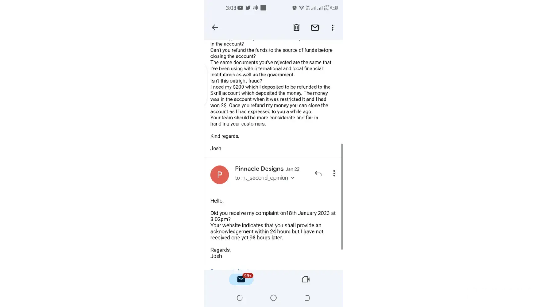 All I was asking is my winings, when we lose we are not asked questions but when we win its hard to get the money. All I wanted is money. Now I have to waste my time to receive my winnings.