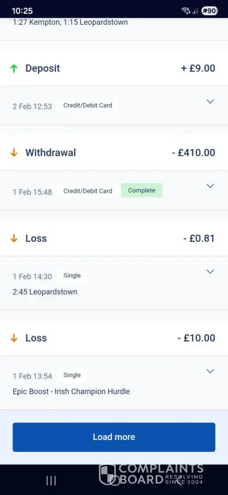It says i withdrew £410 on my william hill account on the 2nd of February but doesn't show up on my banking app