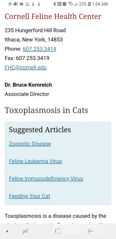 I‘ve had 2 cats from this breeder. The first died from probable fip. The 2nd is currently fighting for her life . She has a severe infection of toxoplasmosis and has the herpes Virus. She will always have problems from these issues and who knows how many others. All three of these diseases result from overcrowding, filth and neglect. Please do not support this business by purchasing a cat. These cats are suffering and the breeder should not be breeding anymore cats.