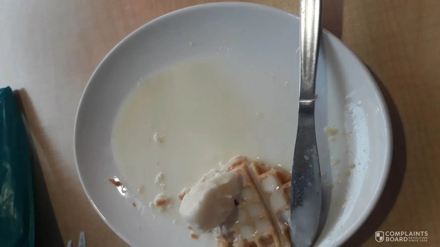 Ordered a waffle after waiting for a while for the waitress to attend to me and received the waffle, didn't take long but all I can say is that the ice cream is very watery. Called one of the waitresses and ask if their ice cream always soaked your waffle like this and she said yes as I showed her.continued to have it till some time as I was not enjoying it and stopped.