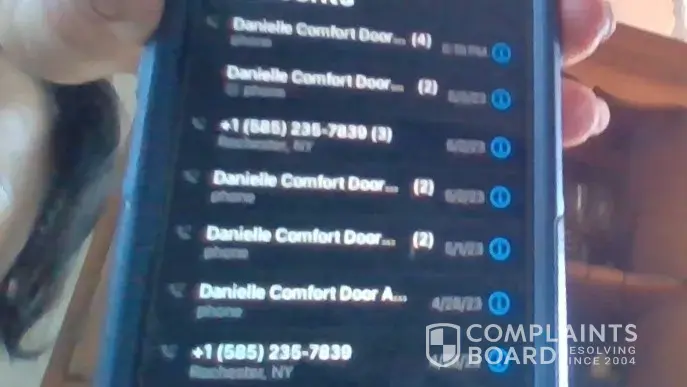 4/23/23 Submitted online request for service work on a screen door that was under warranty. Glass was broken and needs replacing. 4/25 Received call back, a message was left to return Comfort's call at Danielle's direct line. Return calls from me were made on 4/28, 5/1, 5/2, 5/3 some days multiple times. The general phone number at the Rochester office...