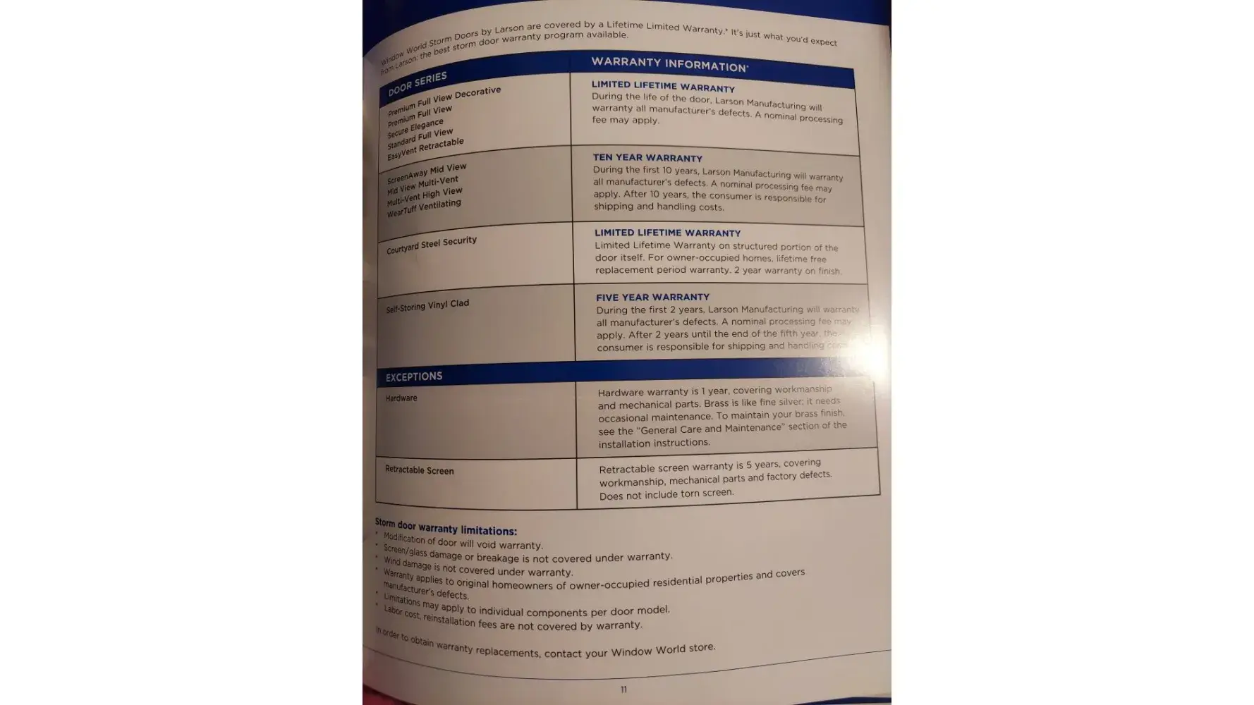 Purchased over $12,000.00 worth of windows and a door last September 2021. Windows and door were installed in March of 2022. 2 windows were broken and not replaced yet. At that time ordered a storm door to go with the door and Windows Worlds has received it but has not gotten around to installing it yet.