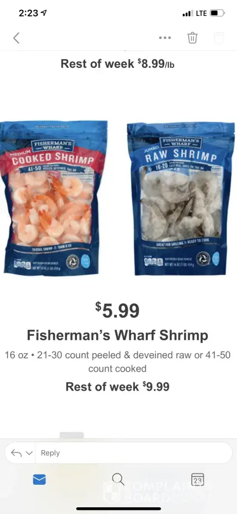 On 7/23/2021 at 1:25 pm i approached the cashier at win dixie at 3116 w commercial blvd, Tamarac, FL. Store # 0210 the cashier was susan. Frozen shrimp was part of my shopping as I received a weekend sale e-mail they were on sale for $5.99 for the weekend 9.99 for rest of week. The cashier informed me I had the wrong shrimp that the raw shrimp on sale was 21-30 count. I immediately showed her the ad and she argued with me saying I was only showing her a picture. I explained it was the ad that was emailed to me from win dixie but she insisted it was only a picture and that everyone was making the same mistake. Well maybe everyone was not wrong and win dixie made an error. I made a special trip to the store for this sale and feel it should have been honored. Store manager did not even come over. It clearly was not my mistake as you can see in the photo. So i told the cashier to remove the four bags from my checkout and I left without them very disappointed and very angry.