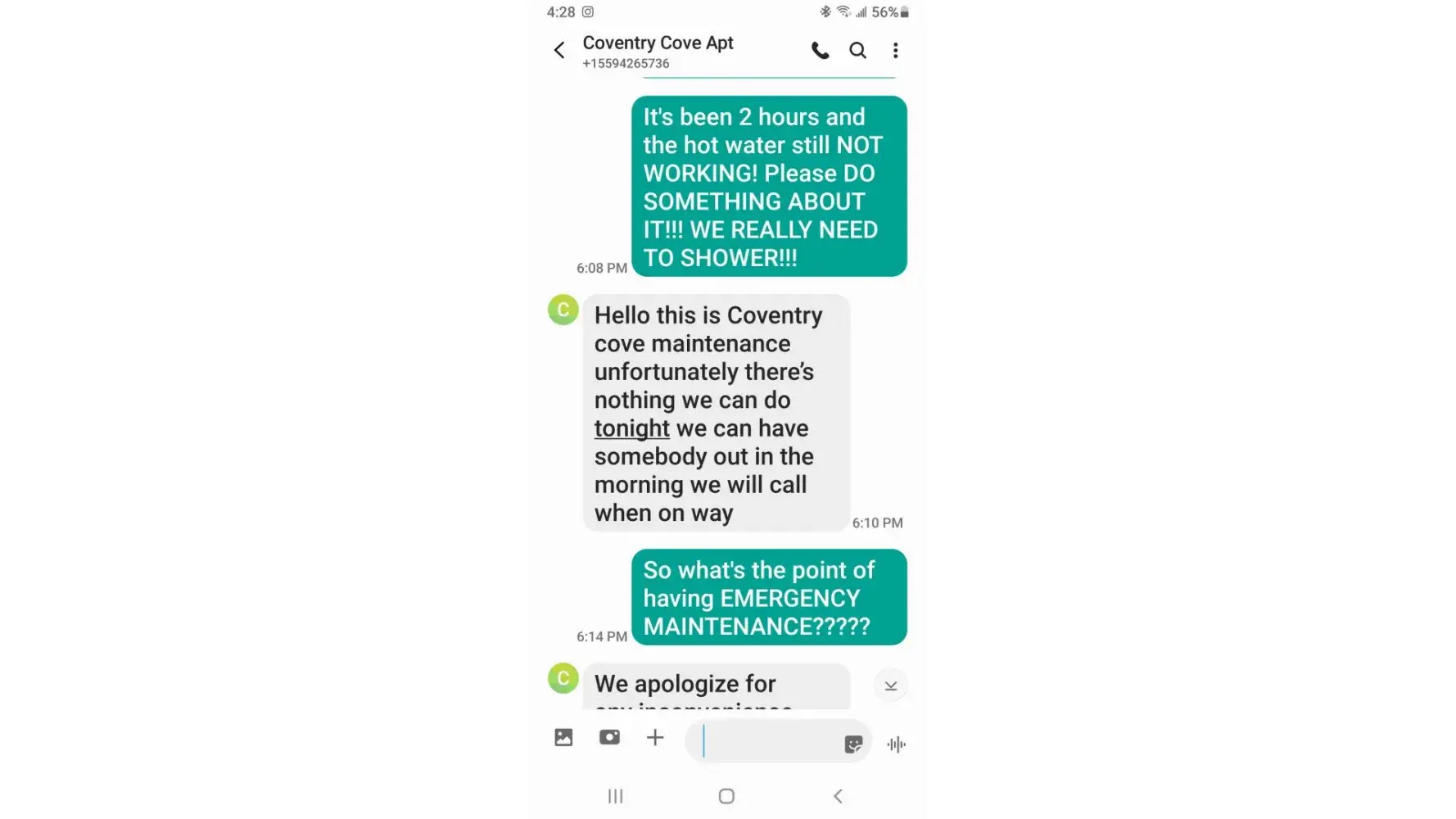 Everytime we have urgent issue like hot water not working during winter & they were being unresponsive, we just have to swallow it. We had to shower with cold water! But when it comes to late in payment (NOT EVEN WHOLE AMOUNT just $300 behind or $200 behind) we'll be charged LATE FEE! SO UNFAIR! To which our late in payment only took 1 time in a year