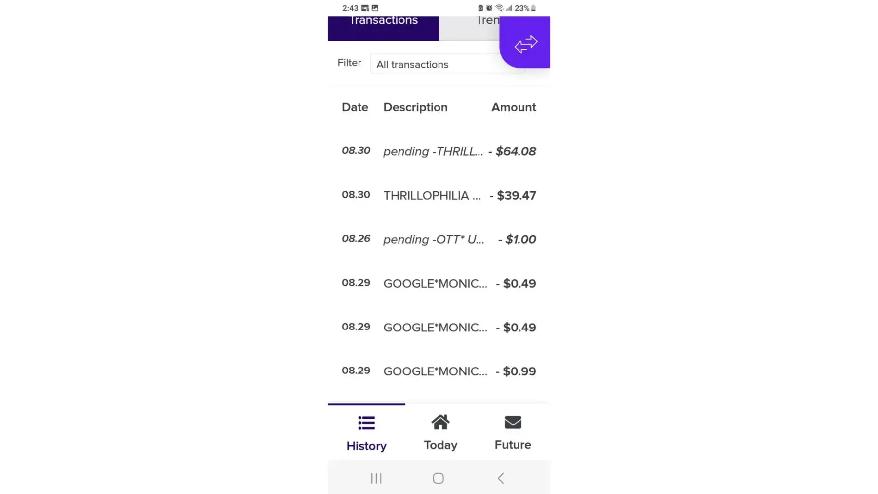 So I noticed two purchases that I made were debited twice. I chatted In to their so called customer service, told him about the charges and was told yo “kindly log out and back in, the charge only debited one time. Well luckily I had a screenshot, the duplicate charges were removed from my transaction history but never received a credit for the $65. Going back and checking the rest of my statements! Watch your account, the people are thieves.