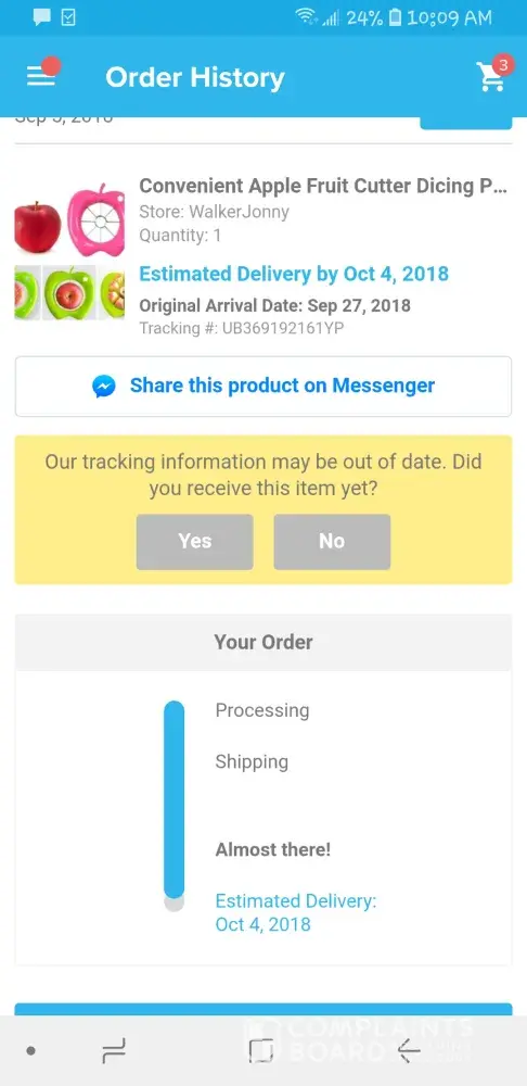 I bought also so many items from Wish. I also ordered few items and it said in the Order History that I will receive them on October 11 and until now I did not yet receive it.