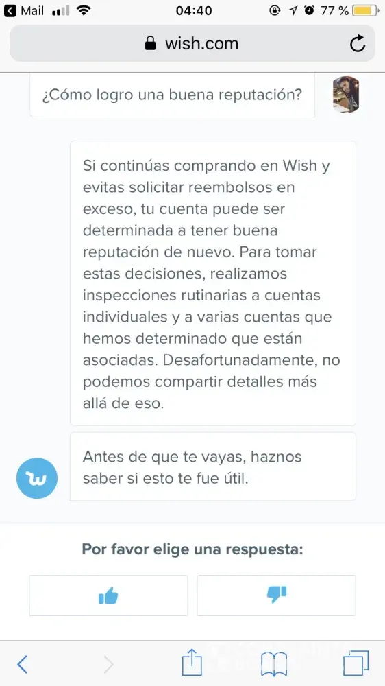 My account was marked by excessive reimbursements since I only request them when the orders have not arrived on the estimated date, which is part of the privacy policy of wish.com, I will stop buying on this website but solve this problem with my account at request refunds, uncheck my account, I feel helpless in the face of any unforeseen or doubt.