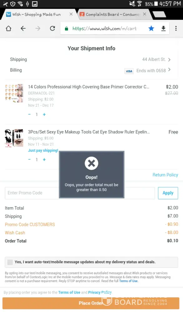 The other day I made a mistake in my order and ended up ordering something I didn't want, for a refund It was offered to have the money refunded back to my credit card or take the refund in "Wish Cash" which they stated would never disappear I can use it when ever I want, my credit card was dinged for the money, I went to spend the money and it tells me I have to spend at least another 50 cents for the order to go through, it only came to 10 cents, there nothing else I want and nothing else adds up to the 50 cents it would require me to spend $4-$5 more bucks.. Just to get the money back I already spend... Is there anything I can do? I know it's only $8 but it's alot when u don't make much money..