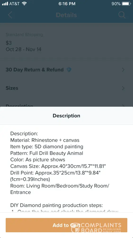 I have ordered a diamond painting and in the description it says full diamond painting but instead I got a partial not happy about this plus I received another partial of deers when I already have that one I was supposed to get a pen today 10/9/18 but I have not received it