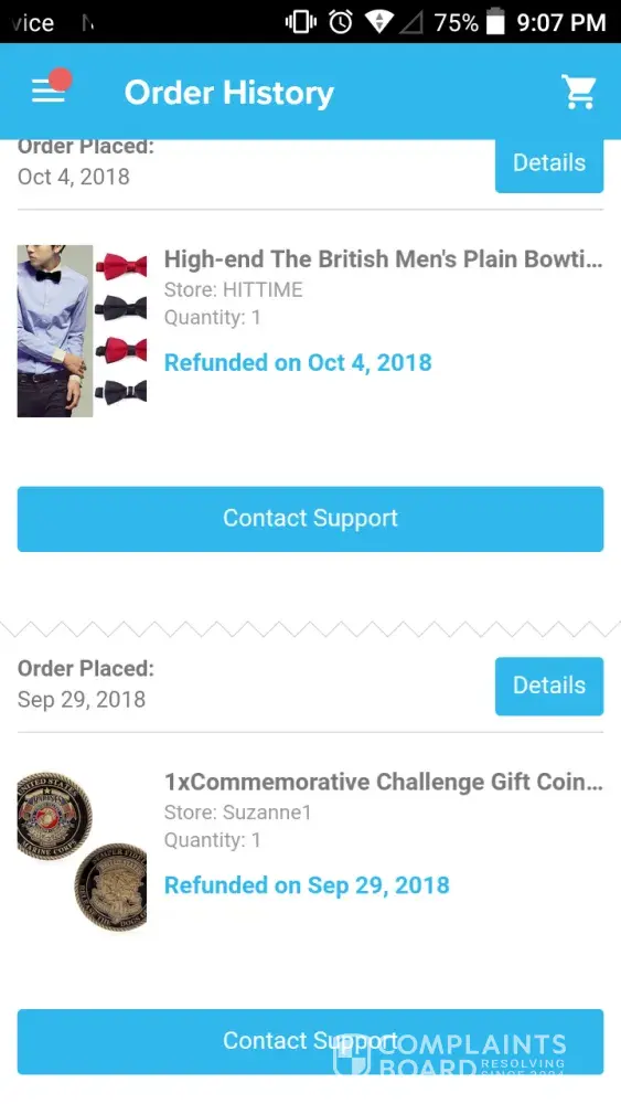 For some reason Wish has refunded me for two items I won off of the free giveaway. A Marines coin and a yellow bowtie. I want the items but as soon as I win them they are "refunded"? Why is this happening? It's really pissing me off. I wait just like everyone else. I've been using this app for almost three years now and I only started having problems recently. If this continues I'm going to delete the app.