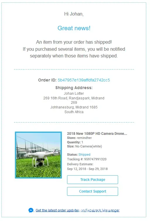 I placed an order Order ID: 5b47957e139affdfa2742cc5 on July 14th 2018 < as per proof by picture they estimated the delivery date as 12 - 29 september 2018. Now today 21 September they say its been delivered 18 th August 2018. Thet changed the shipping date and now they say i cant get a refund as the time has passed already.