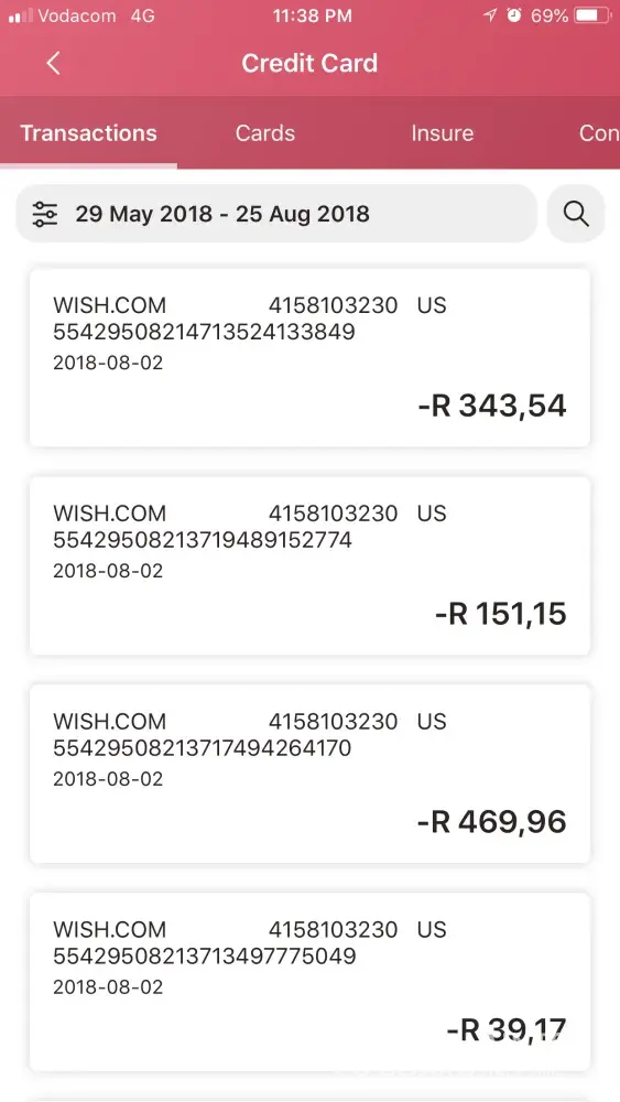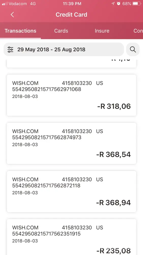 Wish was purchased of amount $164.00 on may 3, 2018 and march 2 2018 amount I forgot it goes back to February 2, 2018i am homeless need my credit back I have nothing and im hungry and need to pay a bill. Please refund me my credit back I think I deserve it my po packages never came business fedex OK ved and never received packages or refund can j get my refund now I've been wanting it and waiting for the longest card ik still have