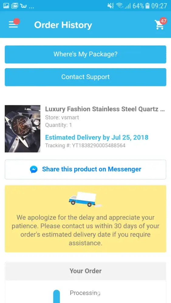 I've made multiple orders on wish and have not received any of them. The first eta I received was 18 July 2018 which was changed to 25July 2018. But to date no delivery has been made. One of my order numbers is [protected] and one of the latest is ub150985668yp. I have attached the orders below of my orders. Please let me know what steps to take.
