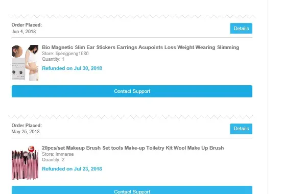 I sent pictures in twice but still they did not acknowledge this and now I am being told its too late to claim a refund ever though i did this on the day they were delivered. The simply ignored my refund request . Below are the orders i placed at the same time with only one being refunded.