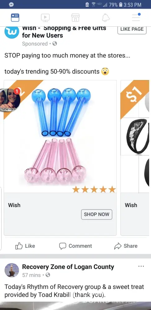 I am a recovering addict. Please take down or do something to stop your ad for METH PIPES from showing up on Facebook. This could cause a newly clean addict a lot of distress. I plan to send a message like this every day until something changes. My recovery family plans to do the same. Please respond to me. Please give this the attention it deserves.