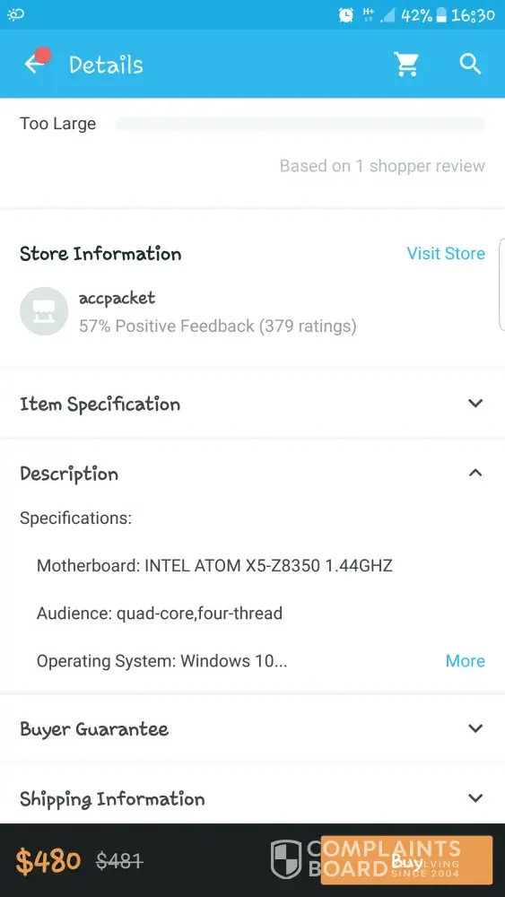 On the 3rd of April 2018 I took a screenshot of a laptop advert and also the description of it which clearly outlined the specs of a laptop. The price was free and I paid $NZ4.00 for postage and packaging.