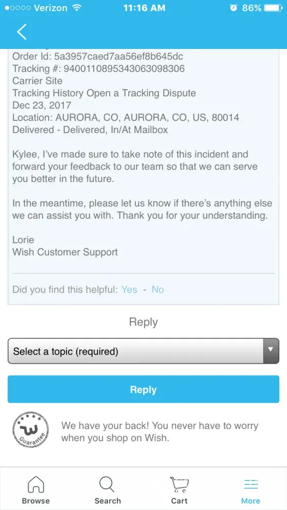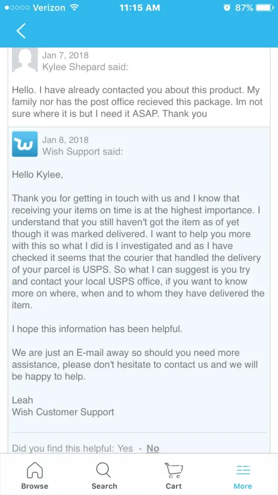 Wish customer service and products not received