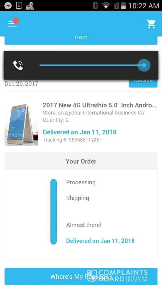 Wish galaxy s8 midnight black, ordered on 1st of jan 2018 still not receive.