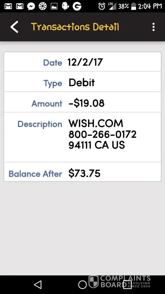 They take money from my paypall account but a have no confirmation of that transaction on my wish account.
