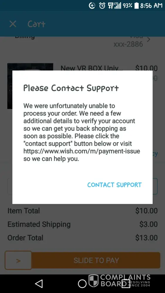 Please help me fix this problem as I like wish and have been bying from wish for a few years. Without any problems