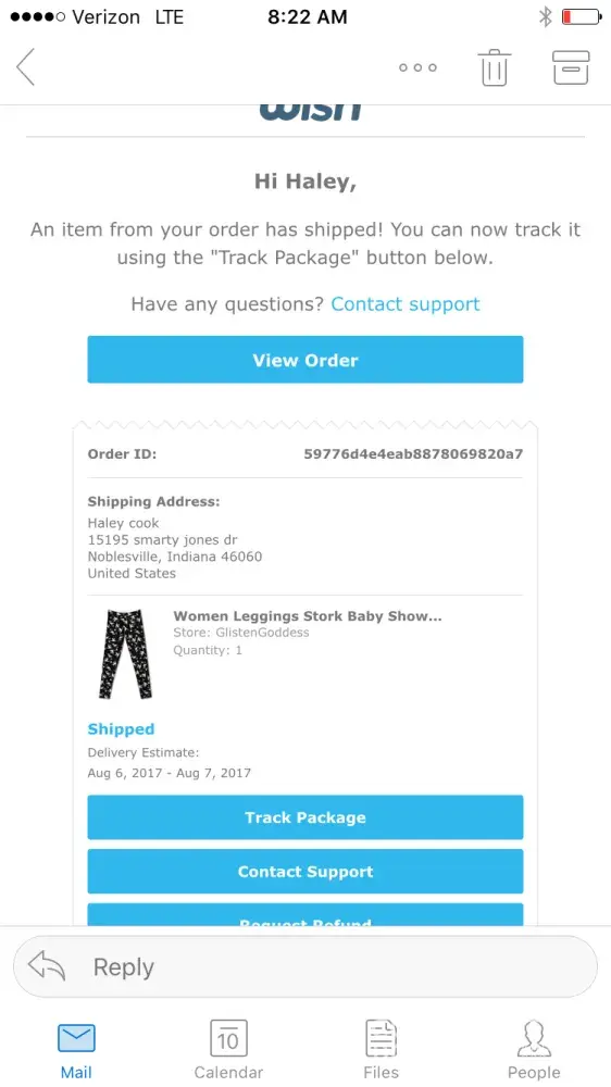 Purchased items worth $107. Did not arrive. Contacted Wish support.