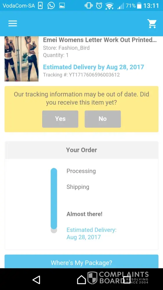 I ordered a cell phone cover on 6 june 2017 and it's now 24 aug I still haven't received it. From go go go trading company ons wish.
