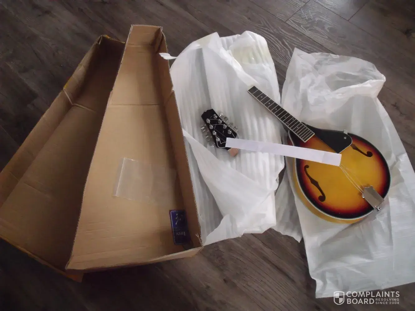 Dear sir, i ordered a mandolin from wish, on the internet, it wasn't that long that i received my parcel, 4/12/17, with the mandolin, by a courier . Who worked for ems, shipping, , when i answered the door the courier had a book to sign thati i received the parcel) as i went to sign it, instead of him passing me the parcel, he laid it on the railing of my doorstep which is 5 feet high, while he was holding the book for me to sign, the parcel fell to the ground, he picked it up and passed to me, and left, when i opened my parcel with the mandolin inside, it was broken at the neck 2 inches below the keys, it cant be repaired, if it could ii wold keep it and fix it myself, as i like the mandolin, so, i wold like a refund of my monies, as i was not to blame for the mishap, or a replacement of the same kind of mandolin, , i hope you can rectify this problem, it would be well appreciated, i intend to shop again at the wish site, , , ( ps i almost had it safe and sound), , oh well accidents do happen, thank you, dennis jessome, the tracking number is eu181637892cn ems52128445