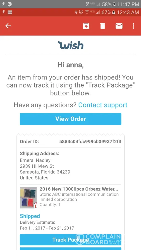 In feb 2017 I ordered Orbeez for my daughter off of wish the amount was taken out of my bank account and here it is almost April and we still never received it but we paid for it and everytime I try to track the order off my email I get the error codes and then there was a message saying that I had duplicate accounts and that's why I hadn't received it or couldn't track it I do not have duplicate accounts I have the order coming to my email and then it won't let me track it I am so angry and my daughter is so disappointed I want my money back or I want the Orbeez this is ridiculous