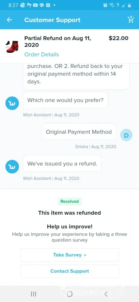 I have been shopping with Wish for a few years so recently when I attempted to check out on a few items in my cart, there were three payment methods to choose from includingCC, GooglyPay, and PayPal, however none of them worked as I continued to receive error messages. I contacted Wish support where I was informed to uninstal then reinstall the wish app. I did so including turning off and restarting my phone; problem solved however the promos in my cart were no longer there. I had screenshot the promo savings when I had the payment issue as well the errors, so now I sent them to Wish and asked them to fix my cart; they refused and continue to repeat their nonsense. Began researching the company online - they also go by Contextlogic Inc, but there are many complaints and negative reviews esp. thru the Better Business Bureau about the company. Sent a fax and email to hierarchy, and to regular Wish support; the only response wasc repetitive and that I did not check out in time. Extremely vexing since I spent much time navigating their check out complications at no fault of mine. I feel they should honor the two promos that were in my cart due to their problematic payment issues. ($3.56 and $1.11)