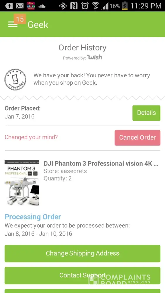 I ordered two dji phantom 3 professional drones. What they do is give you someone else's tracking# that buys them a good month or two to invest that $. The whole thing is a scam. Everything is a knock off. Your lucky if it works and half of the stuff never Makes it to your door step. I'm still waiting for my refund that will never happen. We should be able to do something about then scamming Americans and using our $ like we are giving it to them to invest or something. Is there anything we can do about this?