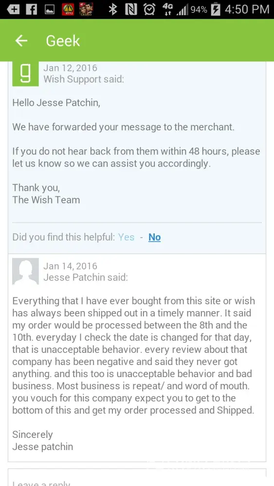 I accidentally found this website. Wish website looked very professional and trustworthy, so decided to give it a try and bought few products. That was back in December when I made an order. It is now February and received nothing yet. I ordered a ring and a necklace. When I made an order I had no idea how terrible Wish is. I could not even think about they might be thieves. I contacted their customer service many times and asked for a refund, but was told that my order would be reshipped. They also promised me a discount for my next purchase as an apology. But since I received nothing I will never use their provided discount. I'll never order anything from Wish again. I gave this company a chance, but that was a mistake and I regret it. I feel that this website is just one huge scam.