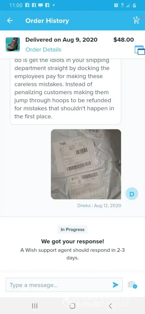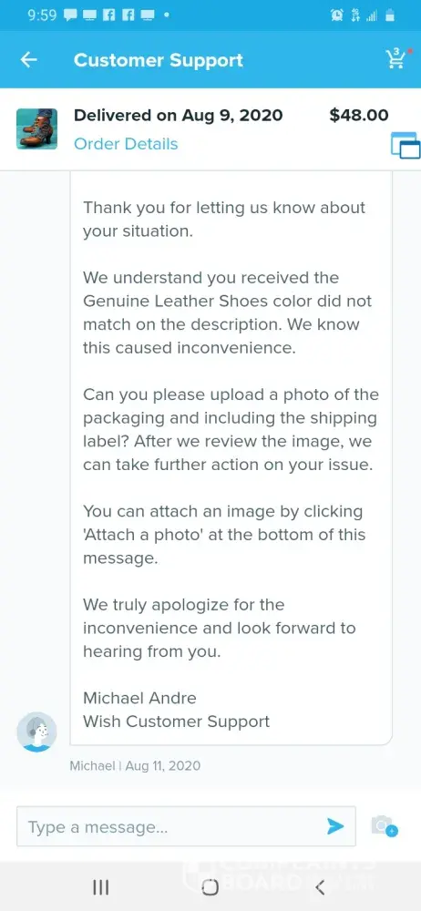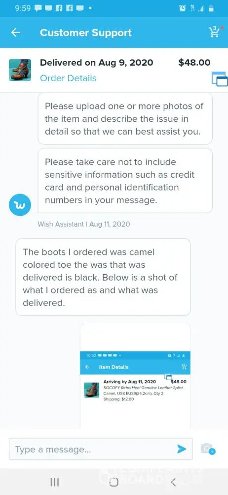 I ordered a pair of brown toe shoes in early May. The shoes I received on 8/9 were black toe. On 8/11 I emailed them my dissatisfaction of their era and attached photos as proof along with request for a refund. They then tried stalling tactics by again requesting additional photos fabricating stories about me ordering 2 pair of shoes when I know i orderered only one brown toed pair which is verified in my order history on the account. I am yet to see a refund! Below are the emails between the customer service representatives and myself. The 3rd photo are the shoes I received. The last photo and the small photo in the top portion of the emails are the shoes I ordered clearly 2 different colors.