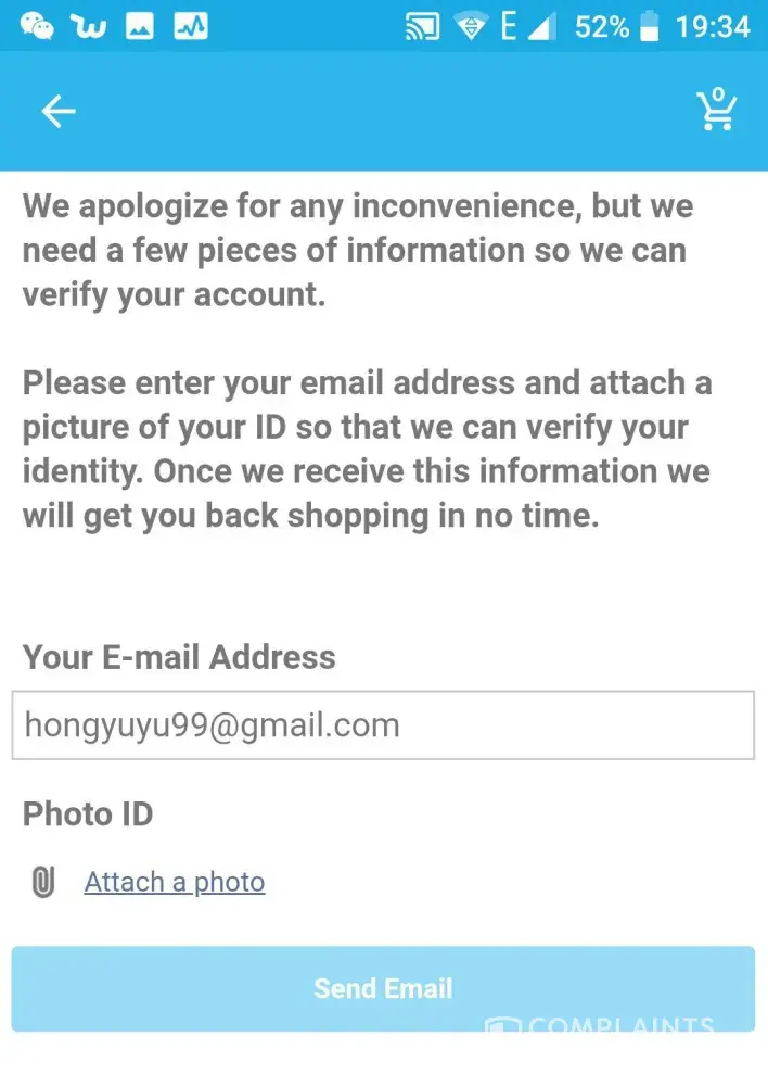 Several months ago my account security was breached on wish.com and someone tried to make several purchases in my name. Wish stopped the transactions and blocked my account, ever since i have been unable to make any purchases due to the fact that i cannot get to the payment stage of the purchase because of pop up messages (attached images) demanding proof of identity blocks me and redirects me to a automated customer service spewing out the same nonsense about having unblocked me. I still have over 1000 NOK of Wishcash sitting in that account and despite having submitted the info required several times i am still blocked. I will give you one more chance to fix this if not i will consider Wish as a non serious company and never shop here again.