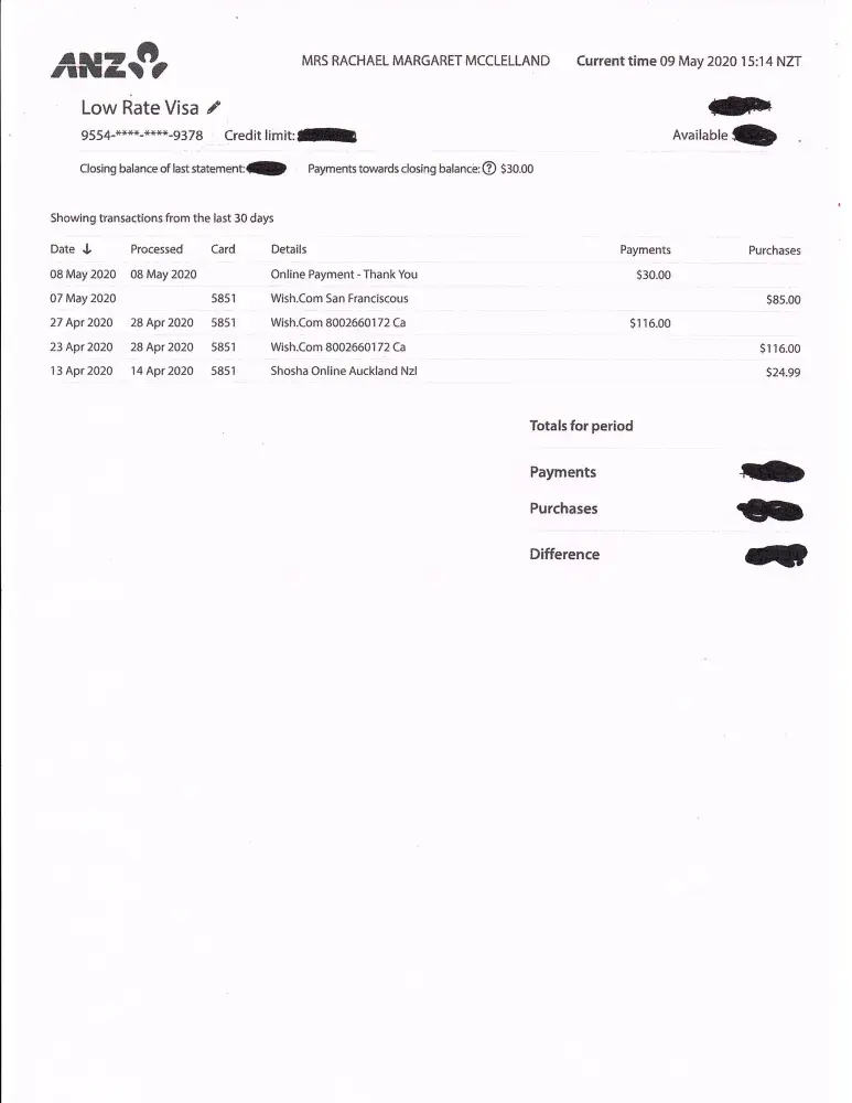 I have 3 unauthorized entries from Wish on my credit card. Fortunately one of these entries is a credit back into my account for the amount taken out earlier. Then there is $85 taken out of my mastercard on the 7th May. I have no idea what these entries are about. Can you look into this for me? There are no other details for these entries! Can you please reimburse me for the $85 debited on the 7th May 2020 and I would also like to know how these transactions happened without me knowing?