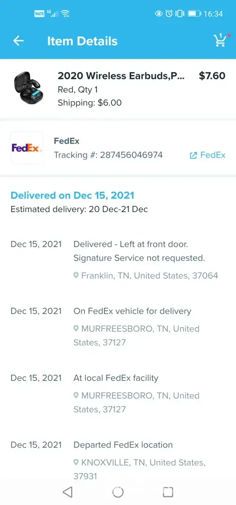One of the item that is T-shirt got delivered on 25th January 2022, but Tab could not be delivered till date, however I contacted customer support to deliver at least the TAB via proper post /delivery method (Screen shot attached), but they send the same via Wishpost, I tried to contact local post office for delivery they refused and said we can't track as the delivery medium is ordinary.