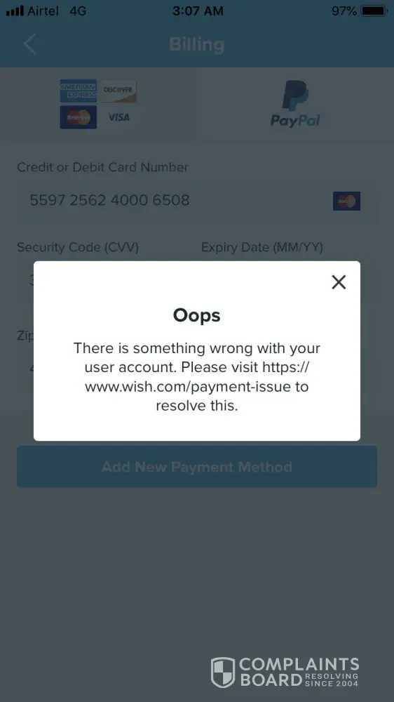 In addition when putting in my details i am also getting a message saying my expiration date is incorrect. This is the first time i am having these issues with Wish.com is there a clitch in your system? I need answers, your instant messages not giving much options to begin with. I'd like someone to reach out and answer my questions please. This is like my 5th email sent. Are you guys still in business i need to know please and thanks.