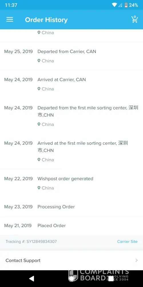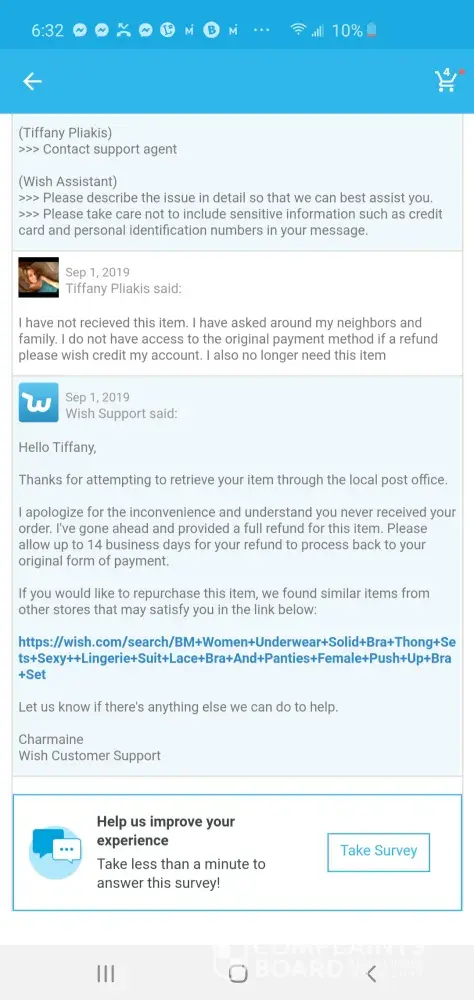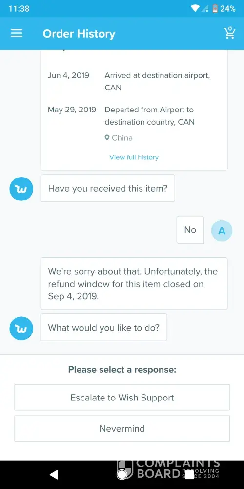 >>> We have already received your previous support message. A Wish support agent should respond within 2 business days.