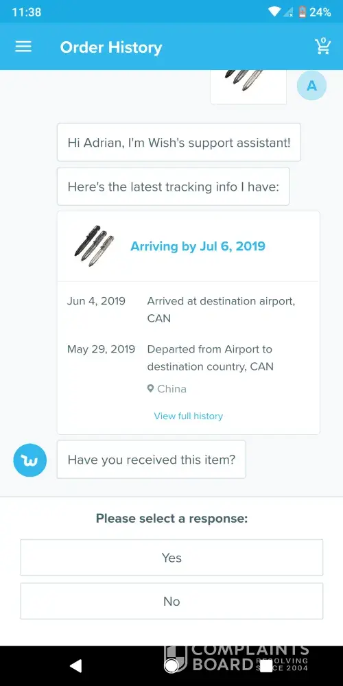 >>> You will need to contact a Wish support agent, as we require more information about this issue. Would you like to contact support?