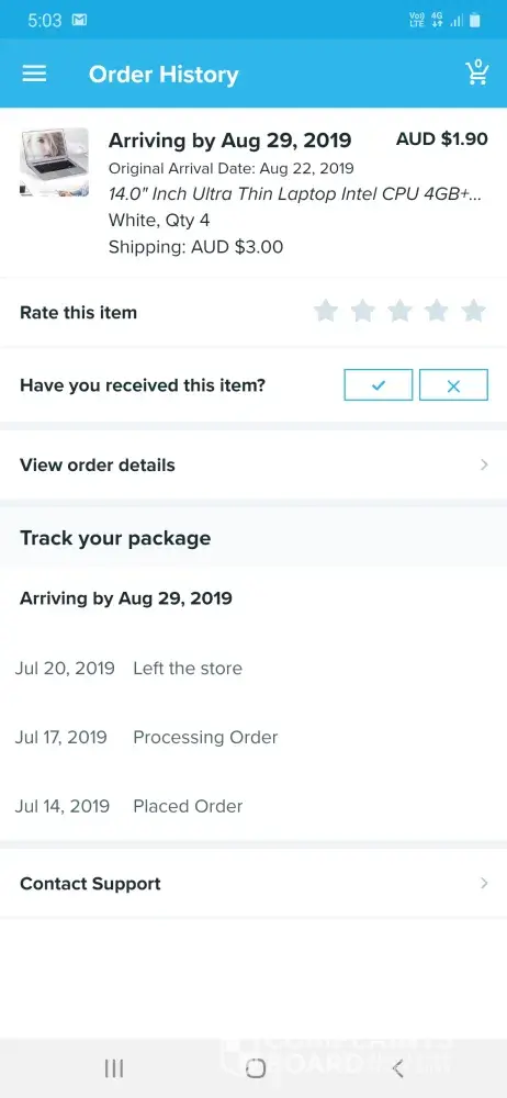 >>> Most items arrive within 1-2 weeks of the estimated date. If you don't receive your item, please contact us anytime before Sep 8, 2019 and we will be happy to resolve your problem.