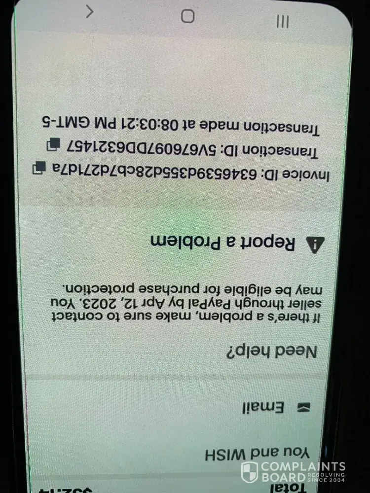 Wish.com issued full refund. Could you kindly remove the complaint? Thank you