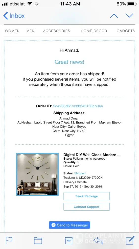 Wish re: [wish] re: delivery problem